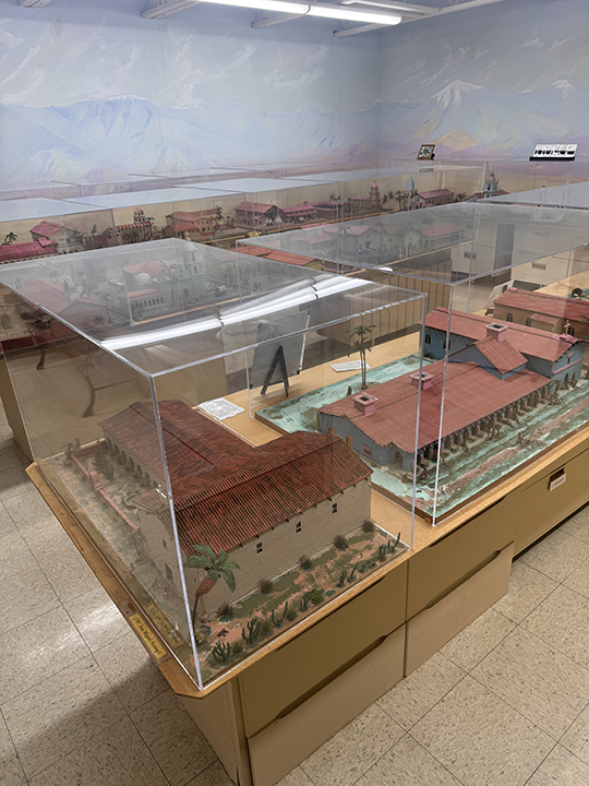 The California Room: Scale models of all 21 of the Franciscan Missions, designed and constructed by Monterey Park resident Manuel Tovar, are on permanent display. Monterey Park was originally part of the San Gabriel Mission lands.