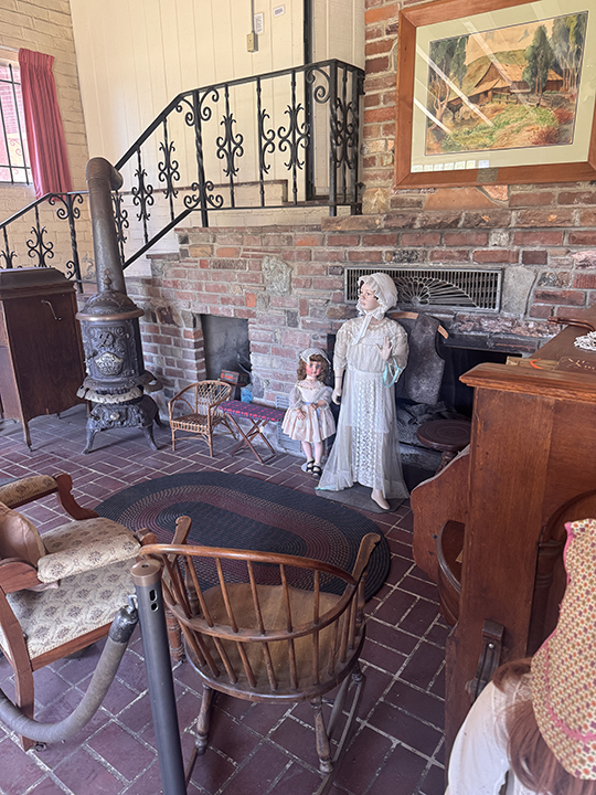 Maude Kidd Room: A living room, dining room, bedroom, and kitchen have been reconstructed to show how people lived and what their home environment was like. Items like a rug beater, butter churn, Victrola, flat irons that weigh up to 10 pounds, toys, an icebox, and stovetop toaster are among the many items that children and young adults enjoy seeing for the first time.